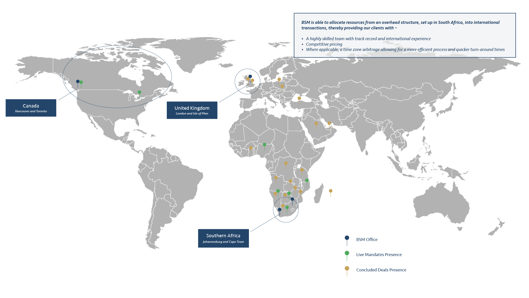 We have presence in London, the Isle of Man, Vancouver, Toronto, Johannesburg and Cape Town.